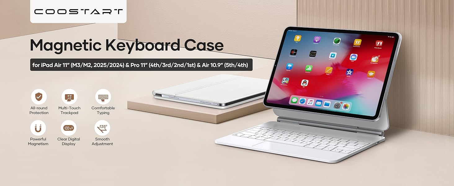 • Rich Accessories: includes COOSTART Magnetic Keyboard, COOSTART Stylus Pen, Pencil Case Holder, Type-C Cable, User Manual. Let you enjoy working, studying, drawing and more fun.