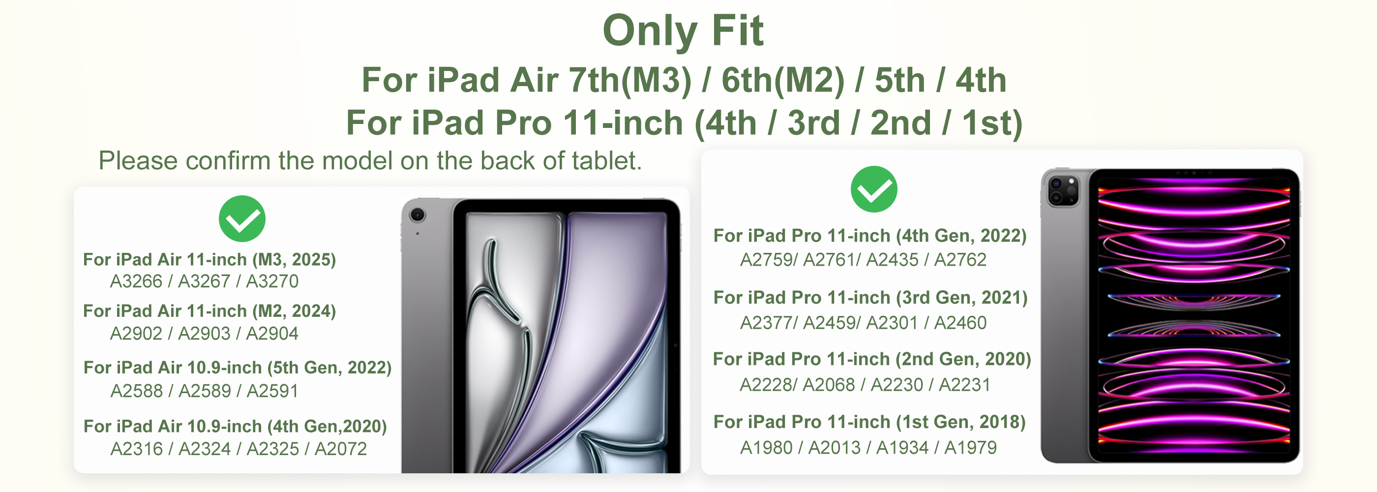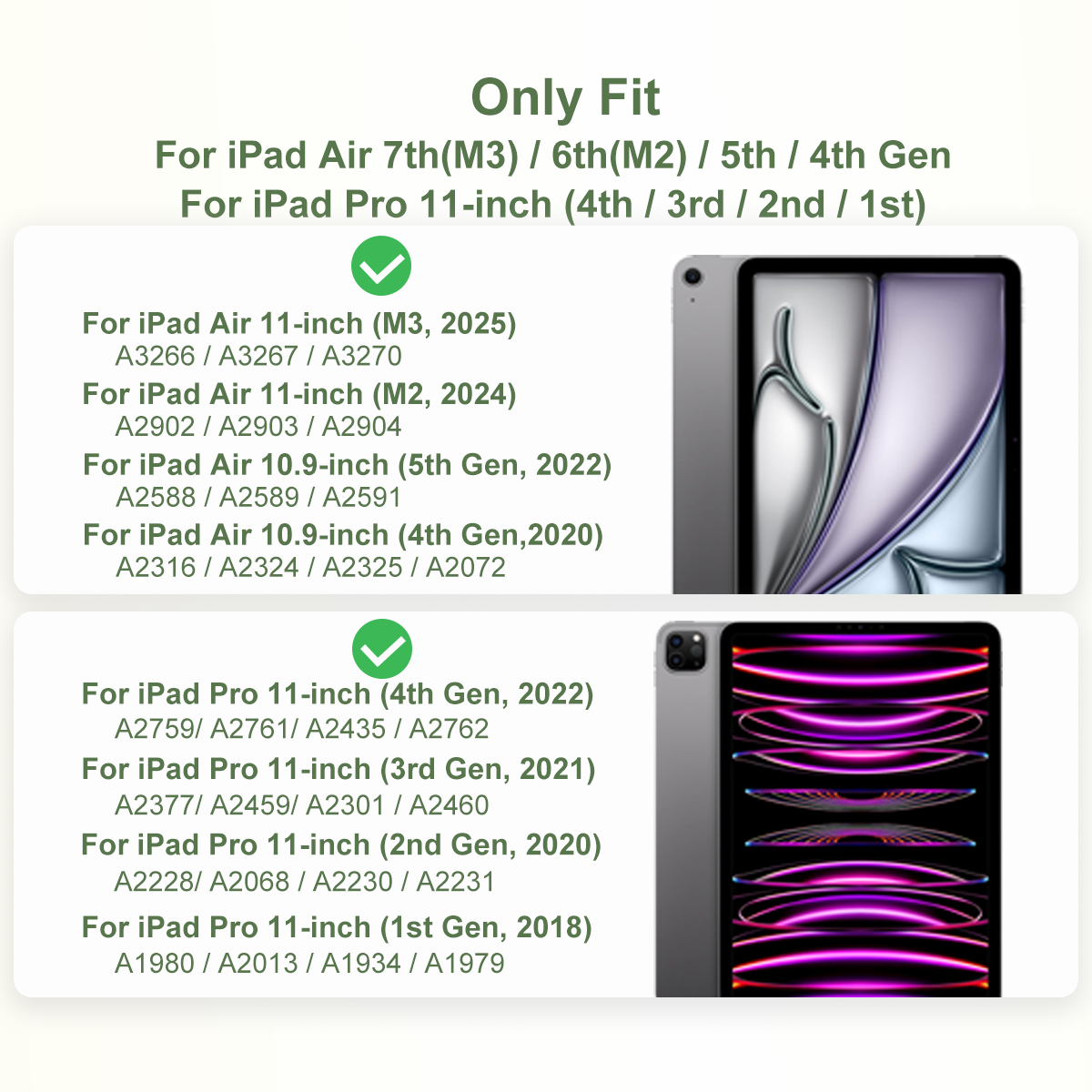 • Compatibility: Exclusively designed for iPad Air 11-inch (M3/M2, 2025/2024), iPad Pro 11-inch (1st, 2nd, 3rd, 4th Generation-2018, 2020, 2021, 2022), iPad Air 10.9-inch (5th Generation, 2022), iPad Air 10.9-inch (4th Generation ,2020). Please note, this coverless case is tailored specifically for these models and won't fit any other iPad