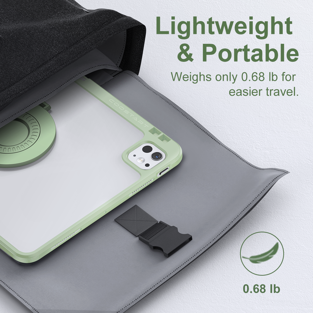 • Versatile Hanging Mode: This minimalist stand is designed in such a way that it can be easily hung, bringing more versatility into your daily use. Whenever the need for more space, hang it up for convenient storage. Moreover, this combo case stand can hold your iPad in an upright position perfectly, ensuring enjoyable viewing experience