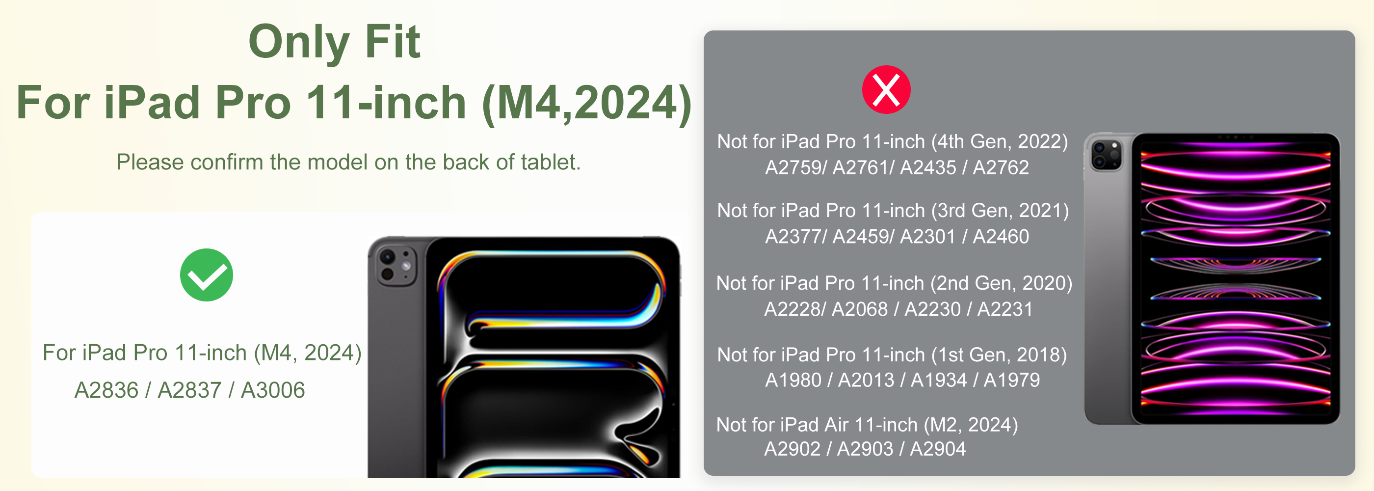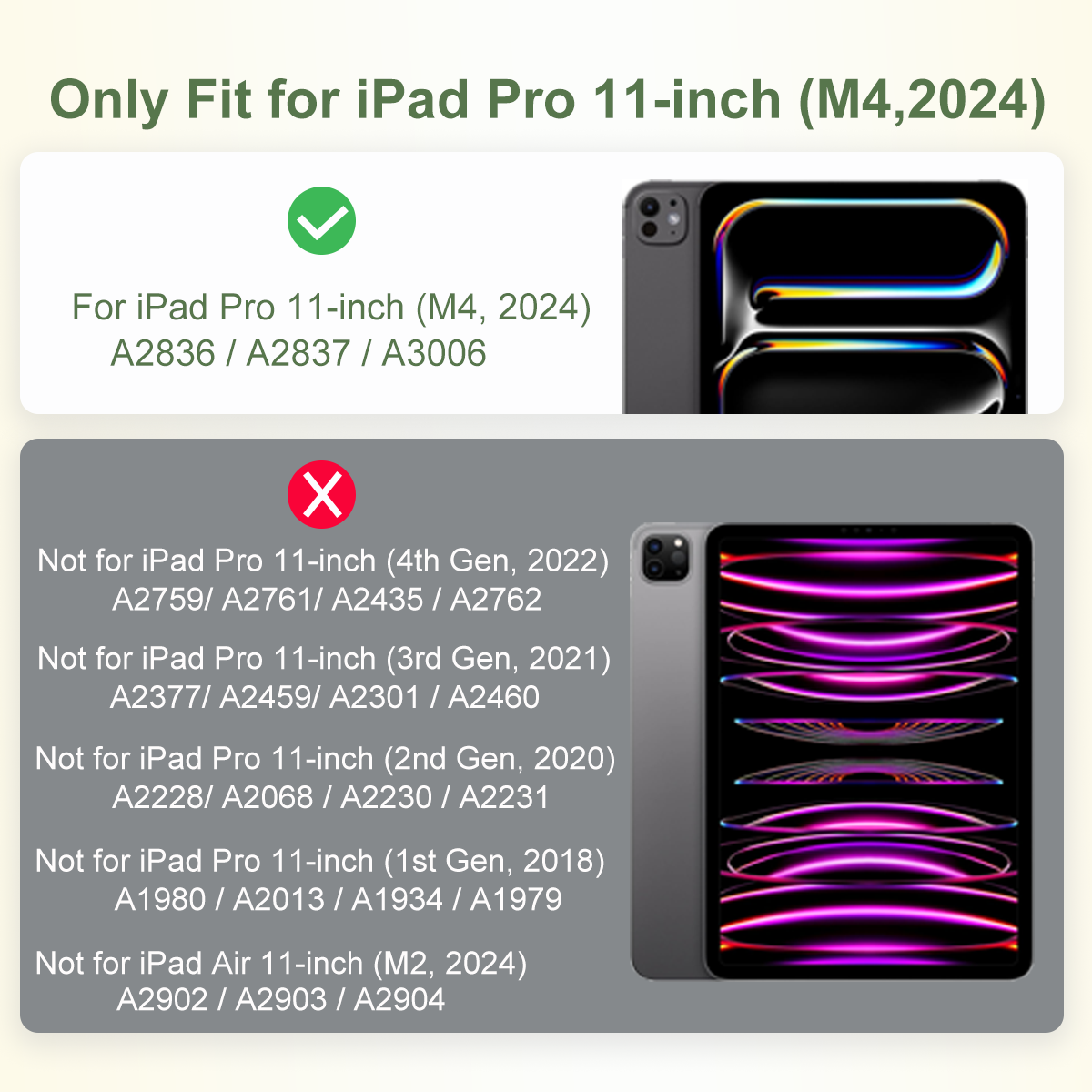 • Compatibility: Exclusively designed for iPad Pro 11-inch M4 2024 (Model: A2836, A2837, A3006). Please note, this coverless case is tailored specifically for these models and won't fit any other iPad