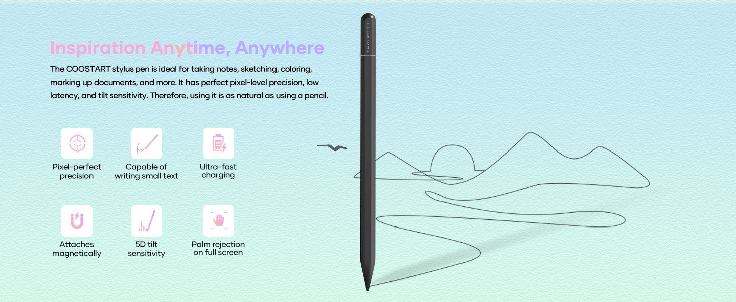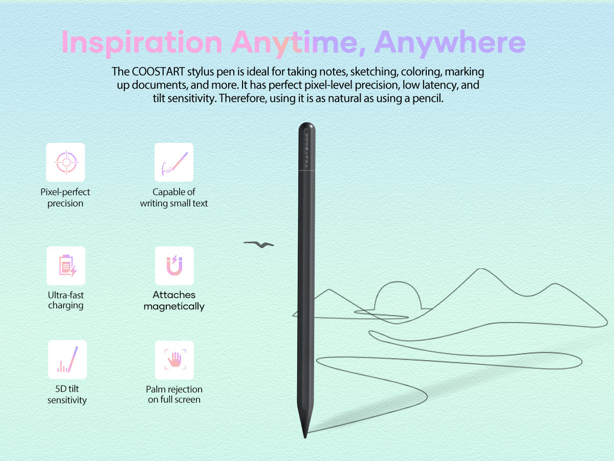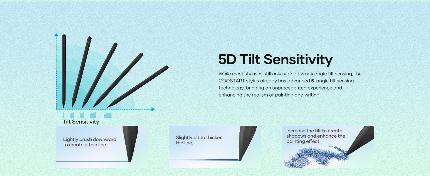 • Palm Rejection & Tilt Sensitivity: Supporting 5 levels of line thickness, depending on the angle of this stylus, you can draw lines of varying thickness on the screen. The palm rejection technology provides a natural writing experience, allowing you to rest your palm on the screen and write as if on paper, which not only offers precise strokes but also enhances spontaneity in both writing and drawing