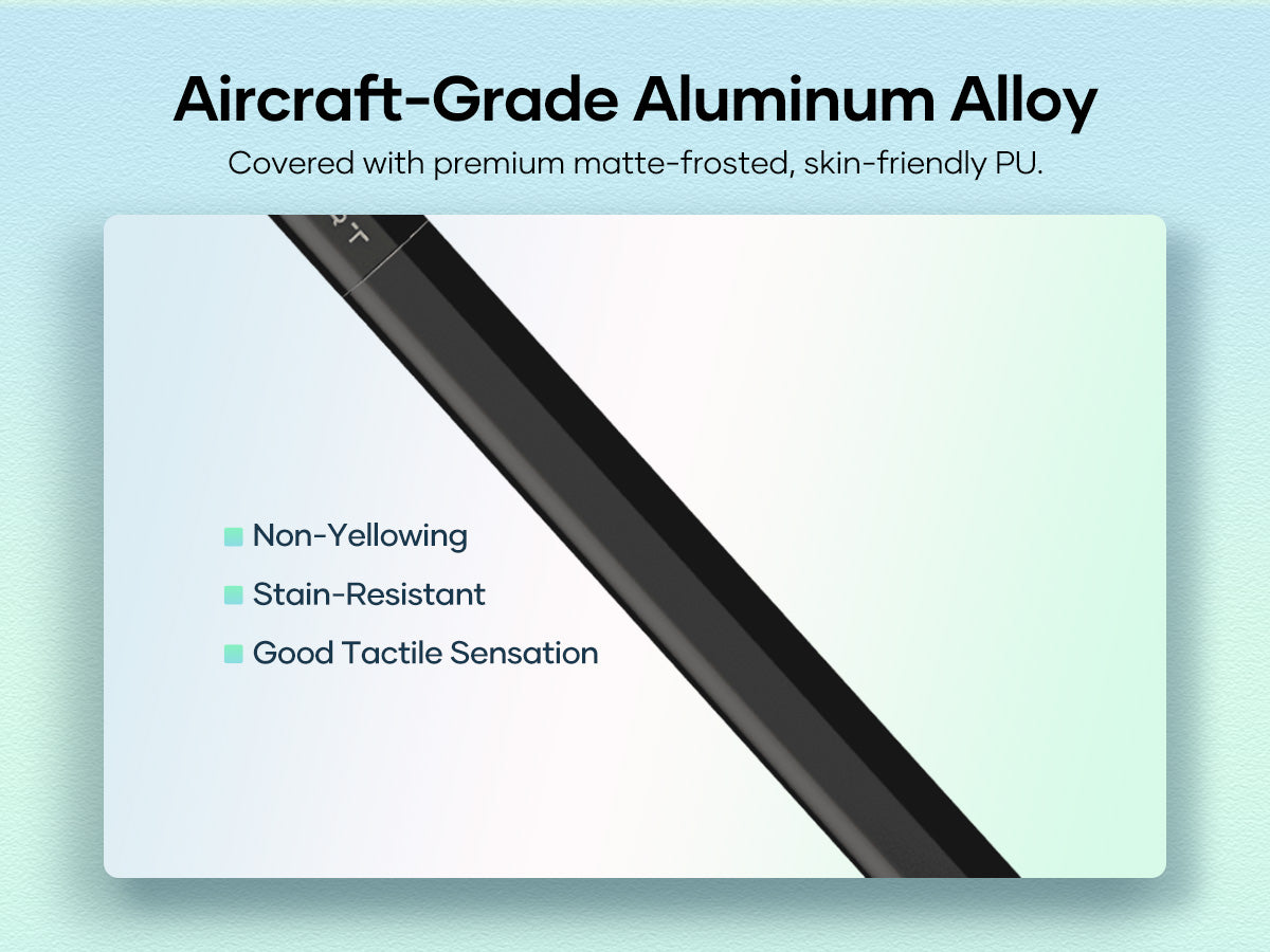 • Perfect Choice: The 16g weight is ideal for drawing, sketching, coloring, note-taking, and document marking. It is made of aircraft-grade aluminum alloy with skin-friendly PU that feels comfortable in your hand and is resistant to dirt and yellowing. [What's in the Box] 1 Stylus, 3 Spare Tips, 1 User Manual. Excellent service is always available for you