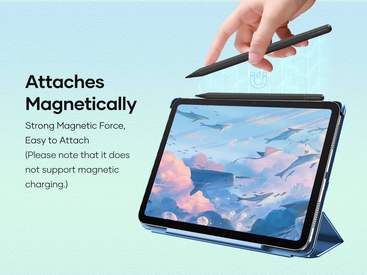 • Attaches Magnetically: Easy attachment to the iPad's side for convenient storage. [NOTE] It does not support magnetic charging and pressure sensitivity. If the stylus does not work on startup, disconnect the iPad's Bluetooth connection to the original Pencil first