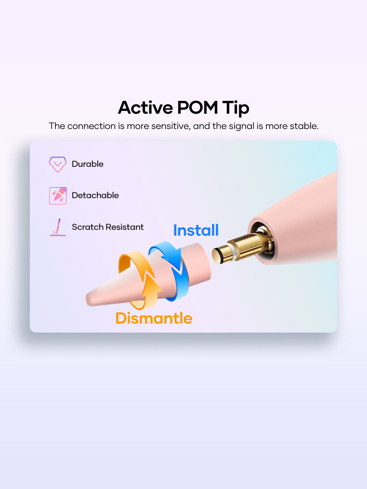 • Pixel-Perfect Precision & Smooth POM Fine Tip: Made by CNC process to prevent scratching the screen, the 1.5mm pen tip can replace your finger to execute more precise instructions, allowing you to write small words and draw fine strokes effortlessly. This stylus pen for iPad utilizes intelligent conduction chips and customized tips to ensure higher sensitivity and more accurate signal transmission, without any lag, offset, or breaking points