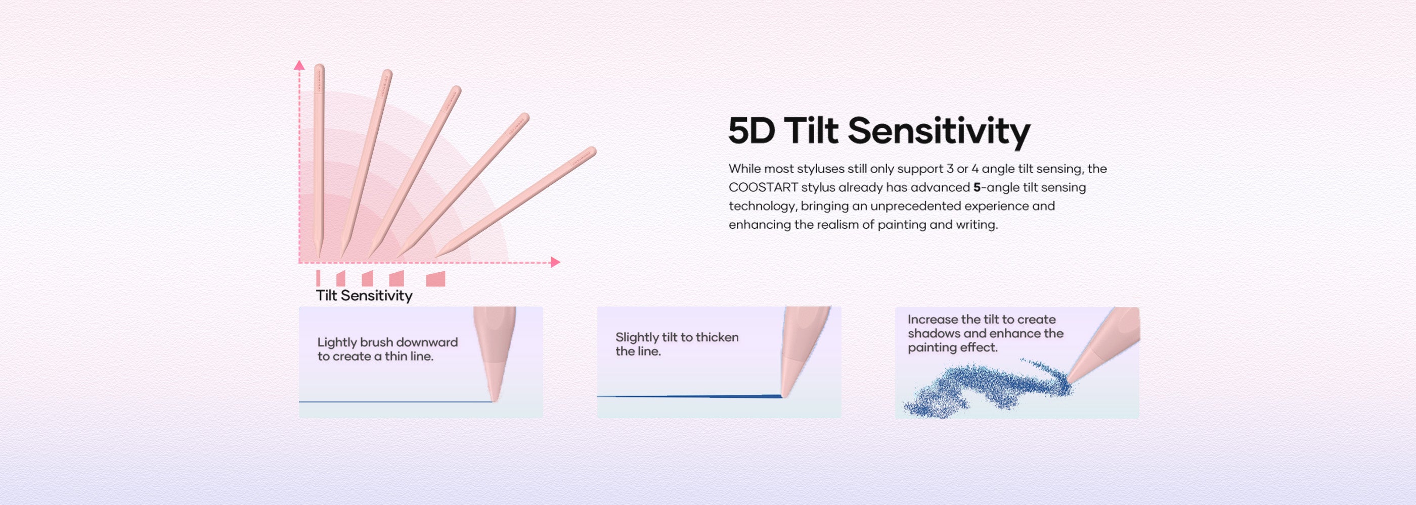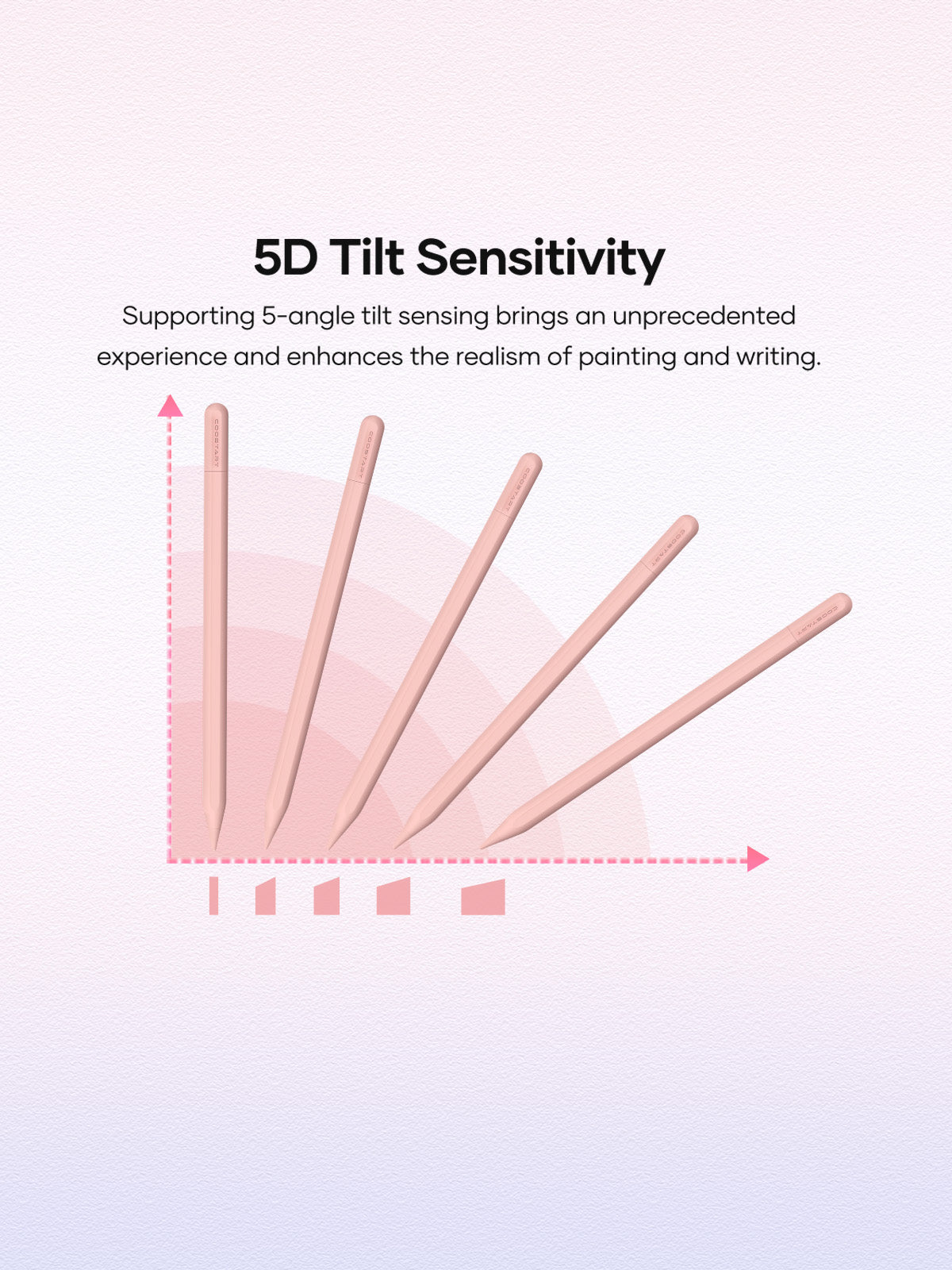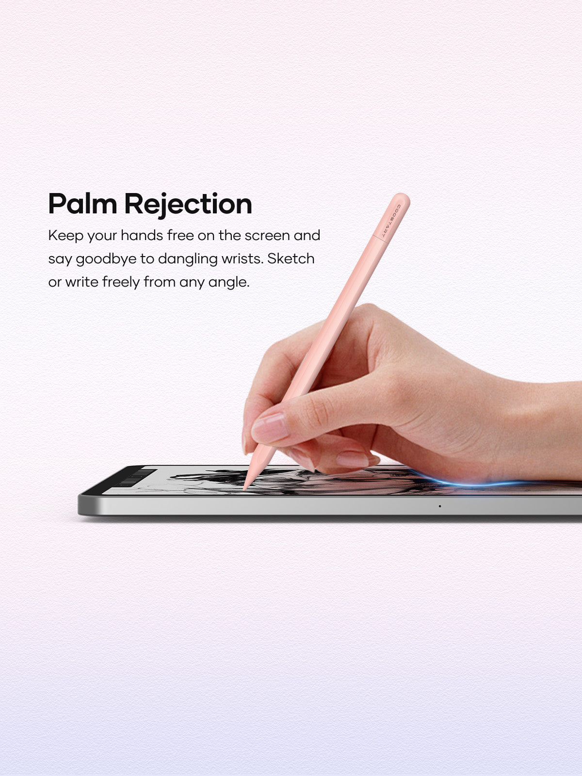 • Palm Rejection & Tilt Sensitivity: Supporting 5 levels of line thickness, depending on the angle of this stylus, you can draw lines of varying thickness on the screen. The palm rejection technology provides a natural writing experience, allowing you to rest your palm on the screen and write as if on paper, which not only offers precise strokes but also enhances spontaneity in both writing and drawing