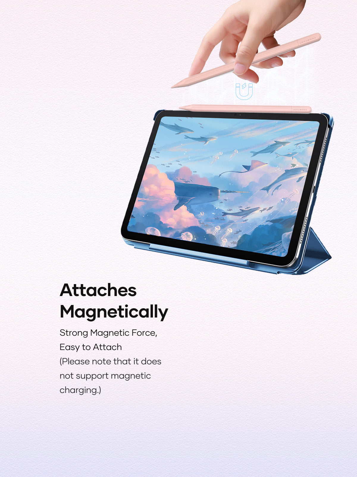 • Attaches Magnetically: Easy attachment to the iPad's side for convenient storage. [NOTE] It does not support magnetic charging and pressure sensitivity. If the stylus does not work on startup, disconnect the iPad's Bluetooth connection to the original Pencil first
