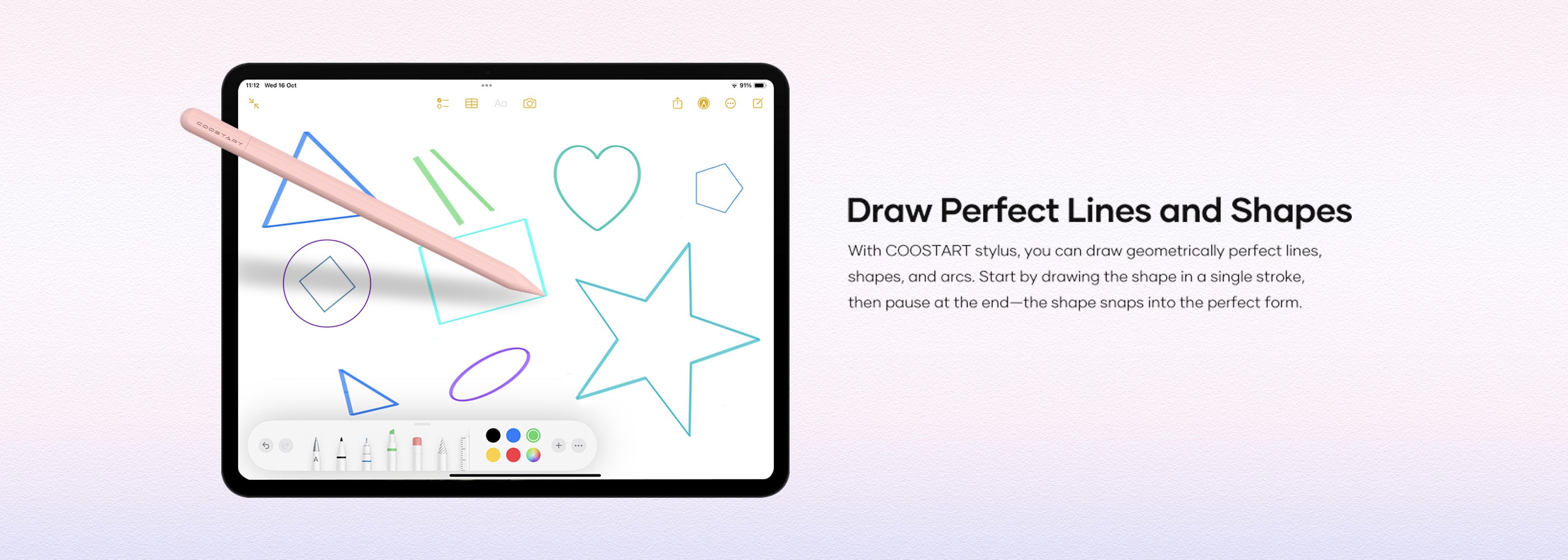 The COOSTART stylus pen is ideal for taking notes,sketching, coloring, marking up documents, and more.Using it is as natural as using a pencil.